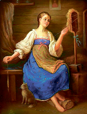 В русской народной сказке «Гуси-лебеди» Баба-яга говорит девочке: «Садись кудель прясть». Что такое кудель, да и как её прясть? «Прясть» – это делать нитку. Для этого необходимо постепенно вытягивать из пучка льна или шерсти – кудели – отдельные волокна и скручивать их в пряжу (нитку). Отсюда произошло слово кудлатый (например, кудлатый пёс). Оно означает «лохматый, со спутанной шерстью, волосами». |