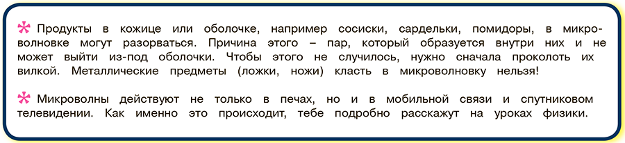 Словно по приказу какого-то невидимки сухие зёрна кукурузы подпрыгнули и превратились в великолепный попкорн, а сырое яйцо взорвалось, облепив испытателя вязким желтком. Картошка, индейка и готовые сэндвичи прошли экзамен успешно, оказавшись подогретыми и весьма аппетитными. И это благодаря магнетрону, который излучает микроволны, а продукты, поглощая их, нагреваются.