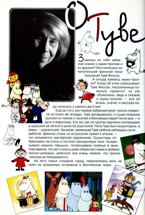 Туве Янссон родилась 9 августа 1914 года в творческой семье: её отец был скульптором, мать – художником-графиком. Она писала на шведском языке и сама иллюстрировала свои произведения, обрела всемирную известность благодаря книгам о муми-троллях.
