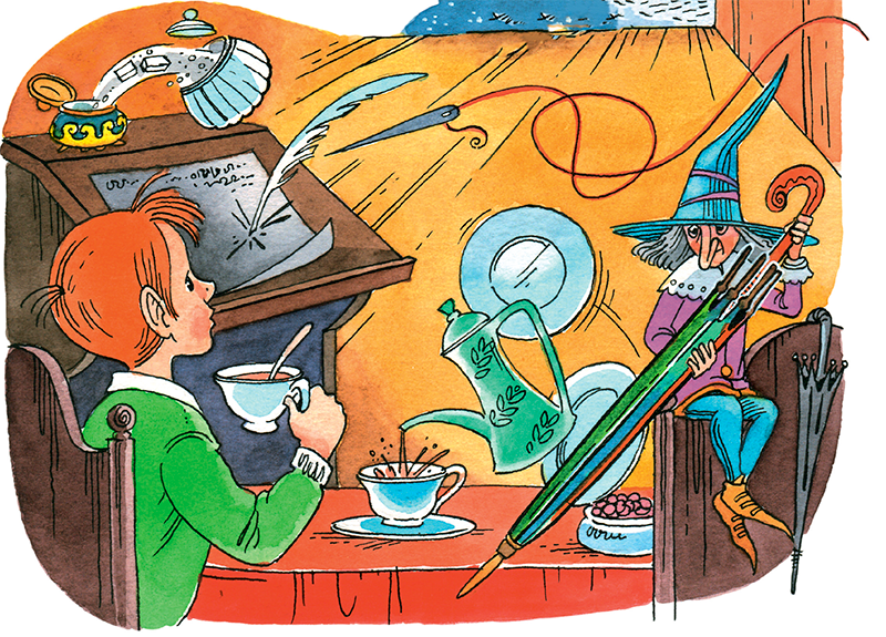 Андерсен увидел Венину машинку времени и улыбнулся. Его сказочная шляпа поднялась сама собой и помахала Вене. А на подоконнике андерсеновского домика уже подпрыгивал от нетерпения фарфоровый чайник.