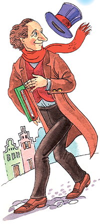 Вот и сейчас: пошёл за мандаринами, а оказался в старой Дании. Данию Веня узнал по крышам, шпилям, водяным мельницам и по шляпе Андерсена. Андерсен ходил в одной и той же старой шляпе. Он считал, что важнее всего то, что под шляпой. А под шляпой у него хранились сказки.