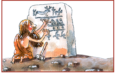 Сначала древний человек на простых камнях писал письма. Но такое письмо тяжёлое – не утащишь, и он в них скоро разочаровался. Потом древний человек узелковое письмо изобрёл (это когда на верёвочках узелки разные завязывают и не просто так, а со значением, смыслом). Но такое письмо разгадать трудно: ребус, а не письмо!