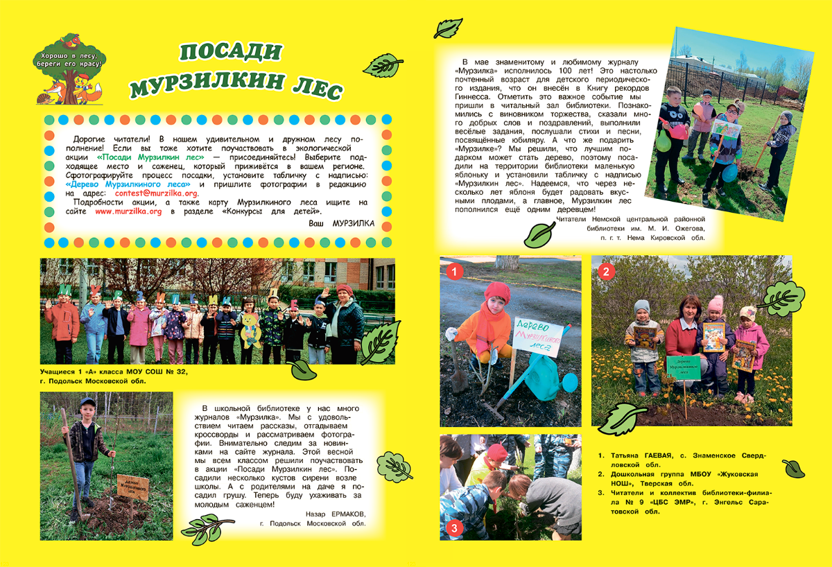 Уже почти 10 лет во всех уголках страны читатели журнала высаживают деревья, чтобы озеленить планету. Присоединяйтесь к нам и вы!
