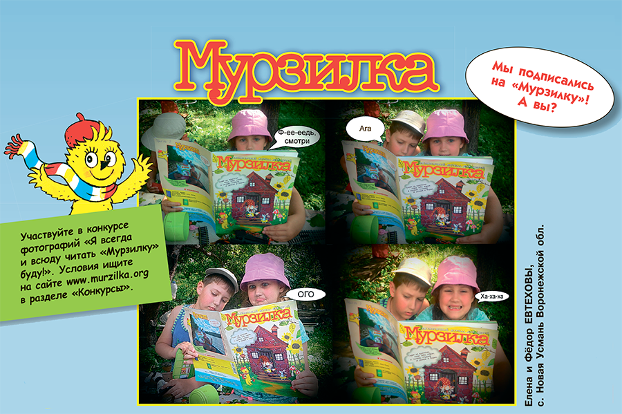 Принимая участие в конкурсе «Я всегда и всюду читать „Мурзилку“ буду!» и отправляя фотографии на электронную почту contest@murzilka.org, вы даёте согласие на размещение фотографий в журнале «Мурзилка», на сайте www.murzilka.org и в наших официальных группах в социальных сетях.