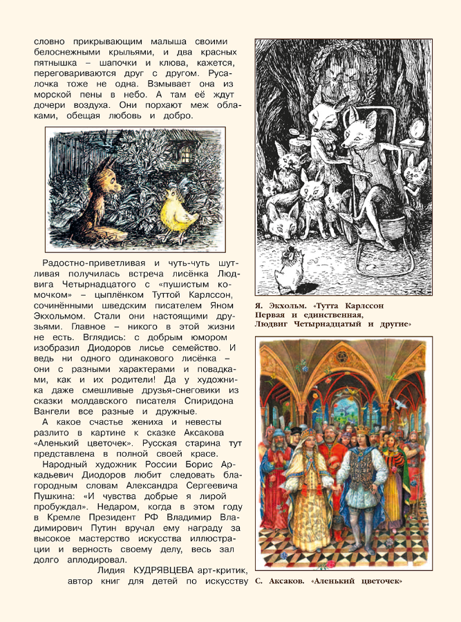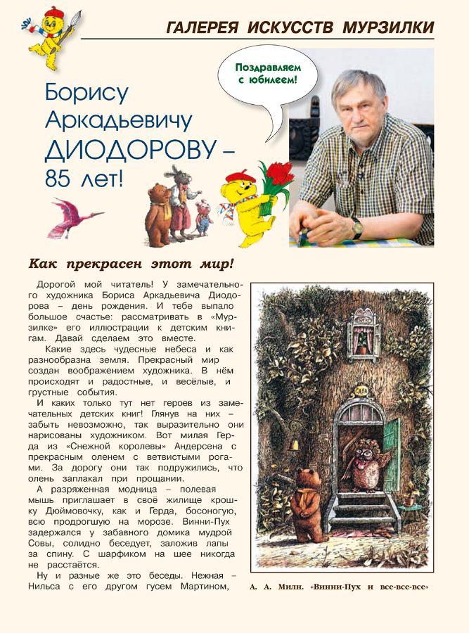 Когда смотришь на рисунки, выполненные московским художником Диодоровым, ощущаешь себя на волшебном Острове Добра. Здесь непослушный шведский мальчик Нильс соседствует с забавным, по-английски основательным, медвежонком Винни-Пухом. У самого берега протягивает к нам трепетные руки печальная датская русалочка – героиня знаменитой сказки Андерсена.
