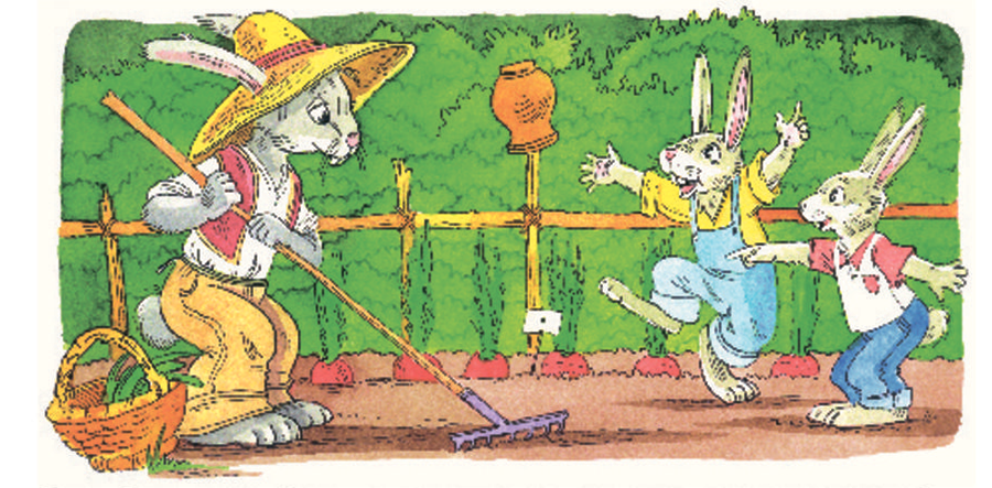 Заядлый огородник Заяц усердно работал на грядках с морковью и капустой. Сегодня у него гостили двое любимых племянников – Прыг и Скок. Им он собирался передать все известные секреты огородного искусства. Вот только зайчата никак не могли усидеть на месте, бегали по грядкам, поливали друг друга водой из шланга и задавали кучу вопросов.