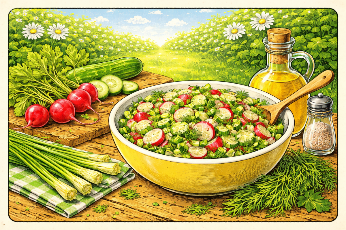 Весна уже заглянула к нам в окно, растопила снег и принесла с собой целую корзину витаминов. А знаешь, где они прячутся? Конечно, в свежих овощах и зелени! Самое время отметить вкусный и полезный праздник — День весенних салатов.